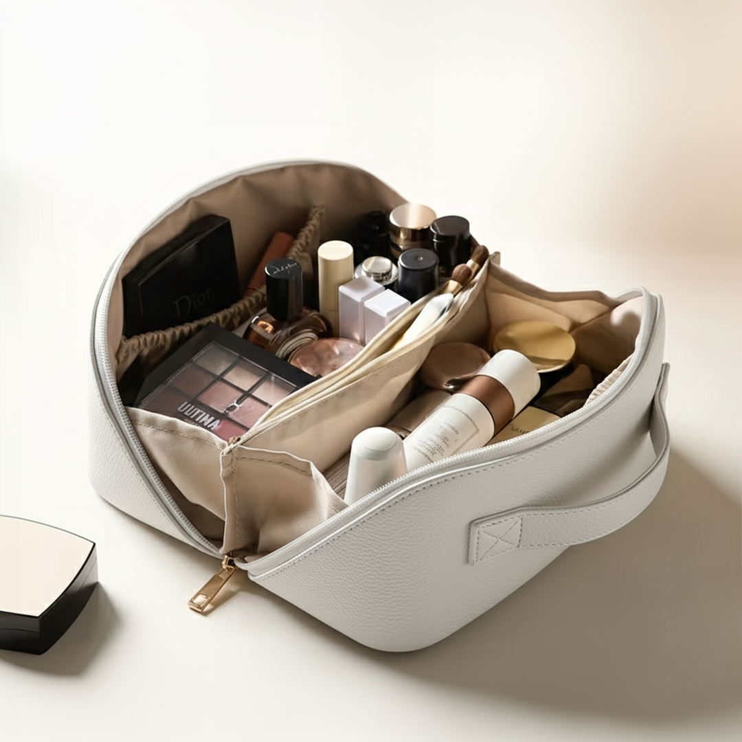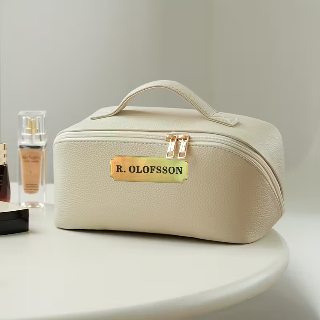 Upptäck elegansen och funktionaliteten i vår exklusiva personligt graverade sminkväska i högkvalitativt PU-läder. Denna högkvalitativa sminkväska är det perfekta valet för dig som vill hålla dina sminkartiklar organiserade och skyddade med stil.